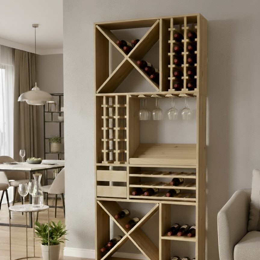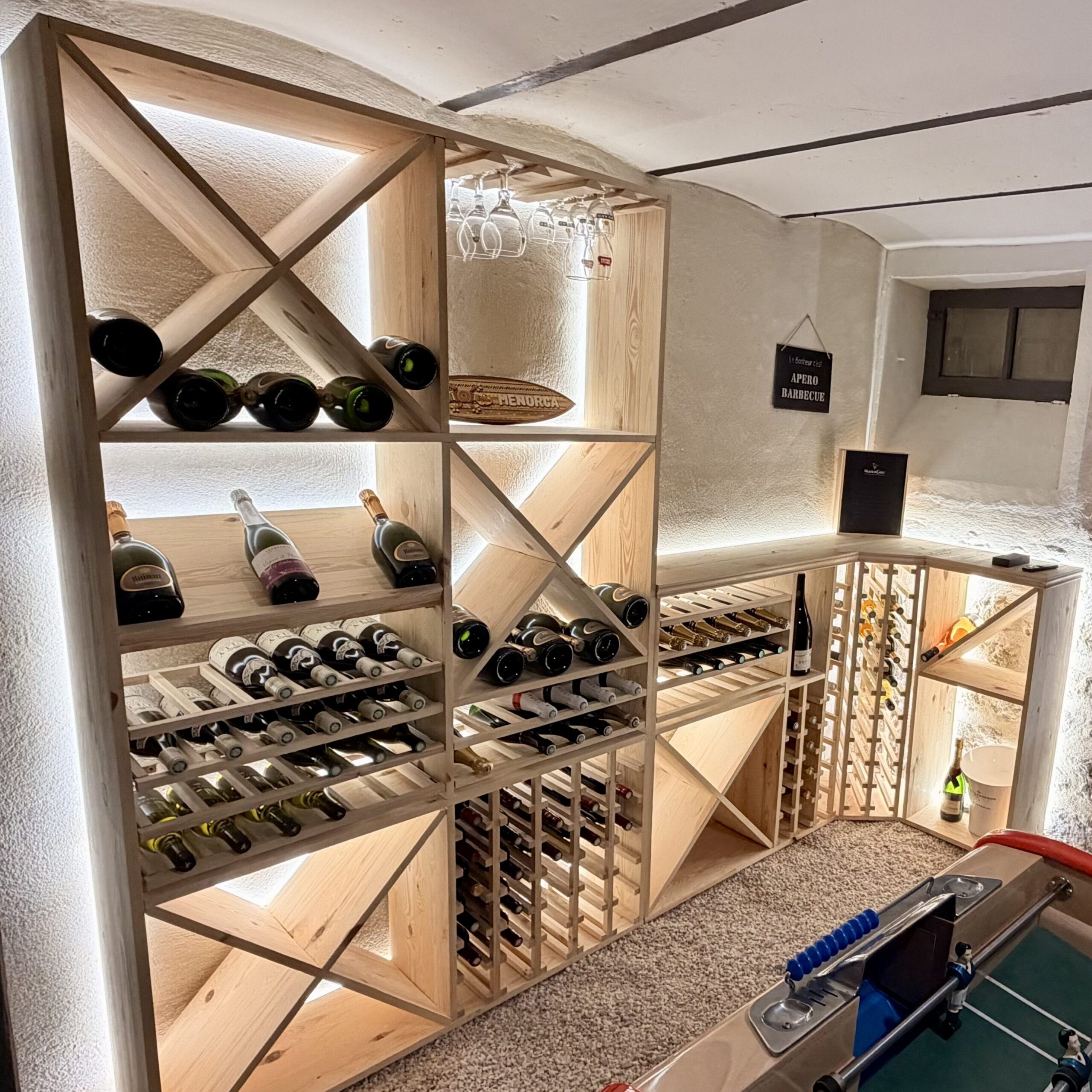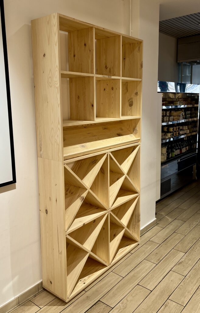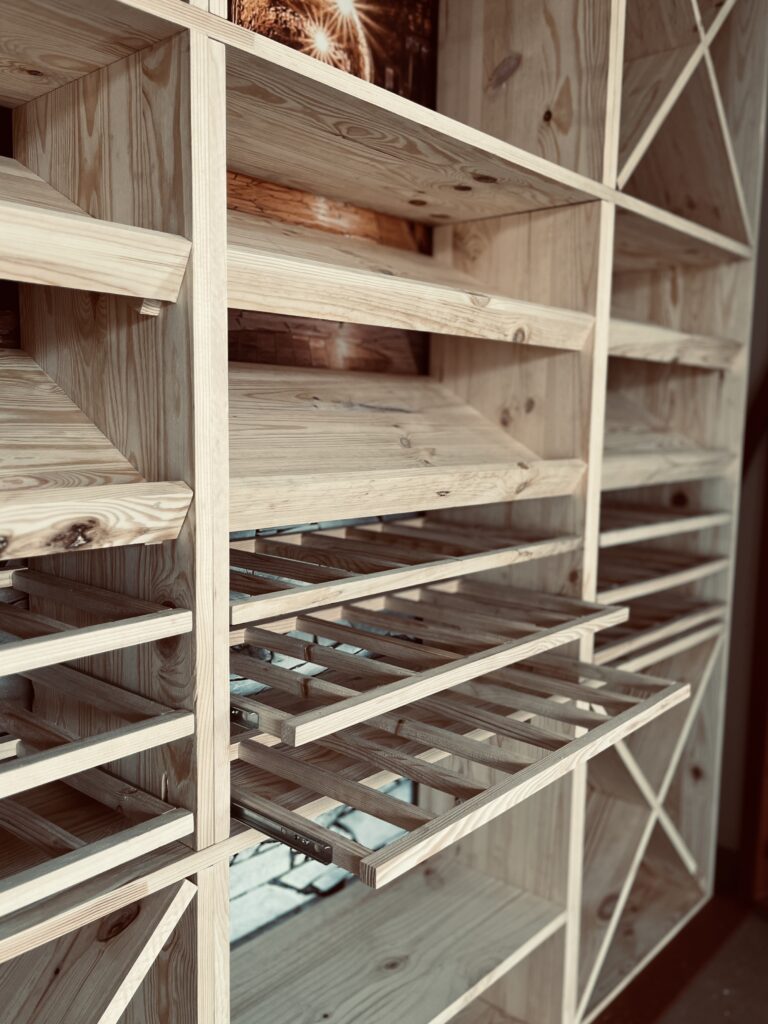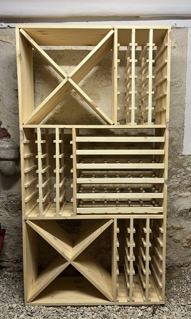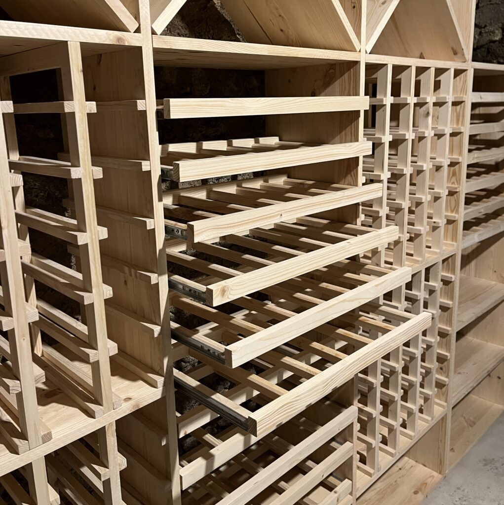 Nous concevons les meubles pour aménager votre cave à vin et s’y intégrer parfaitement. Les casiers sont en pin naturel d’Europe, non traité.